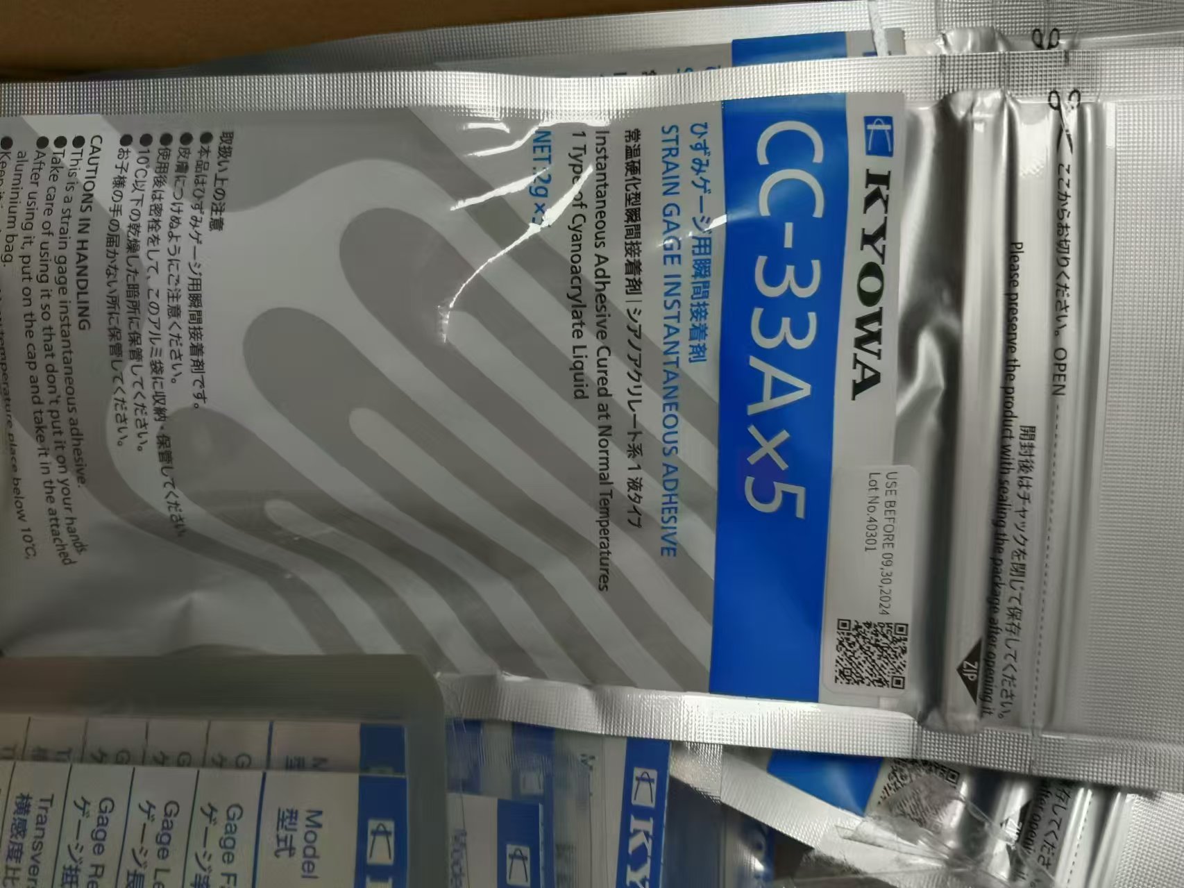 使用主要適用粘合劑硬化后的使用溫度范圍(℃) | CC-33A:-196~120℃ |